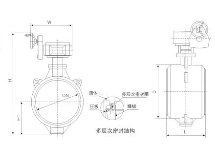 4、GD高性能对夹蝶阀主要根据剖面、长度、高度、外形等作出说明。