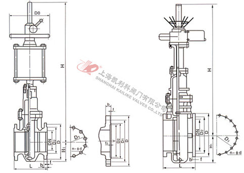 (5) 执行机构–这些阀门可以配置电动、液动或气动执行机构。DN300以下配置标准手动手轮,DN350以上配置斜齿轮操作机构。