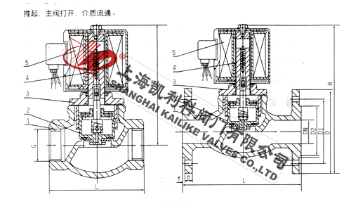 ZQDF电磁阀为分步动作直接先导式电磁阀,可根据断电时所处开、关状态的不同,可分为常闭式电磁阀和常开式电磁阀。常闭电磁阀,线圈通电后,衔铁在电磁力作用下先带动副阀阀塞提起,主阀阀杯上的流体经副阀流走,减少了作用在主阀阀杯上的压力,当主阀阀杯上的压力减少到一定值时,衔铁带动主阀阀杯,并利用压差而使主阀阀杯开启,介质流通。线圈断电后,电磁力消失,衔铁因自重下落复位。同时依靠介质压力,主副阀得以紧密关闭。常开电磁阀,线圈通电后由于吸力作用,动铁芯下移,把副阀阀塞压下,副阀关闭,主阀阀杯内压力上升,当压力升到一定值时,主阀阀杯的上下压差一样,由于电磁力作用,动铁芯失去主阀阀杯下,压紧主阀阀座,阀门关闭。线圈断电时,电磁吸力为零,副阀阀塞和支铁芯由于弹簧作用向上提起,副阀打开,主阀阀杯上的流体经副阀流走,减少了作用在主阀阀杯上的压力,当主阀阀杯上的压力减少到一定值时,利用压差把主阀阀杯推起,主阀打开,介质流通。