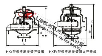 产品名称: 带呼出接管呼吸阀 产品型号: HX4、HXF4