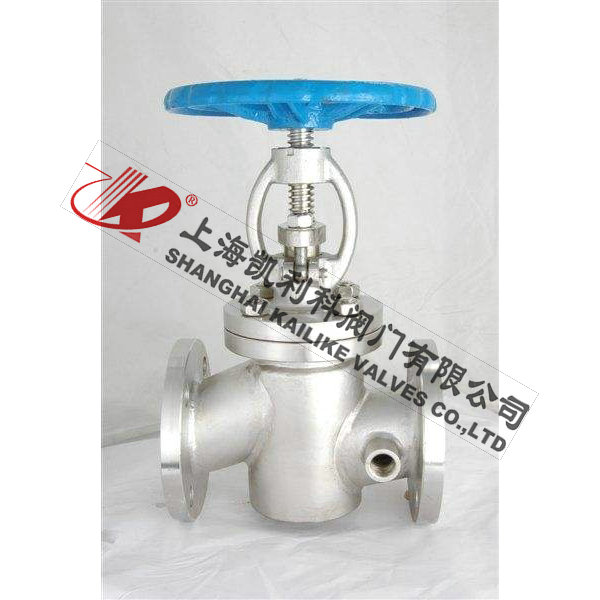 BJ41W夹套保温截止阀的保温夹套焊装于阀门的两法兰之间,阀门的侧面、底部设置有保温夹套的两个连接口。直流保温截止阀特别适用于化工、化肥行业的管路上,夹套内涵入蒸汽能防止介质结晶。广泛应用于石油、化工、冶金、制药等各类系统中,以输送常温下会凝固的高粘度介质。