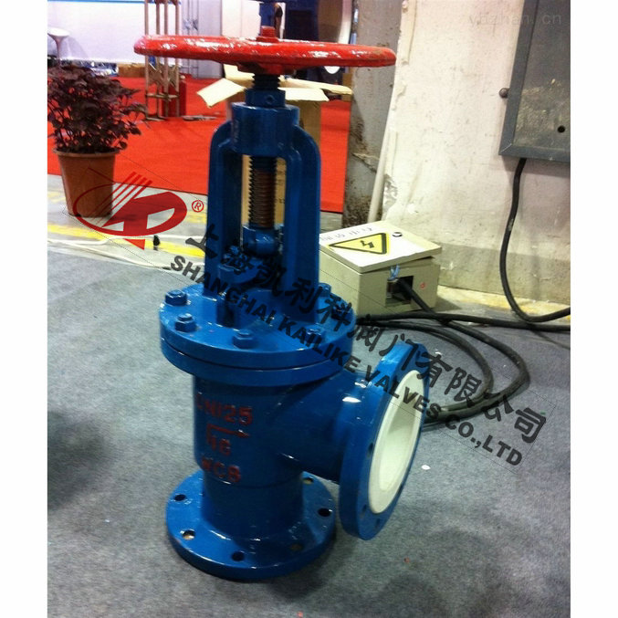 J44F46衬氟角式截止阀专用于控制腐蚀性或强腐蚀性介质,阀体内腔表面覆有可供选择的各种氟塑料,适用在-50~150℃的各种浓度的王水、流酸、盐酸、氢氟酸和各种有机酸、强酸、强氧化剂,还适用于各种浓度的强碱有机溶剂以及其它腐蚀性气体,液体介质的管路上使用。