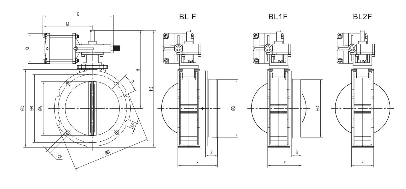 BL1F阀体结构特点:带有顶部法兰及折边部件,适用于连接柔性套管。